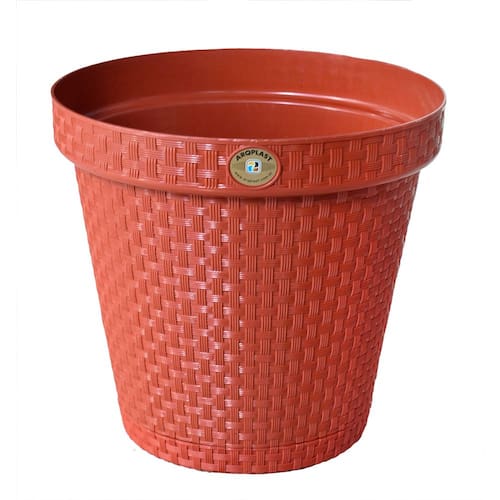 Descrição: Vaso de Plantas Redondo com Prato Rattan 10 Litros Terra Cota Arqplast