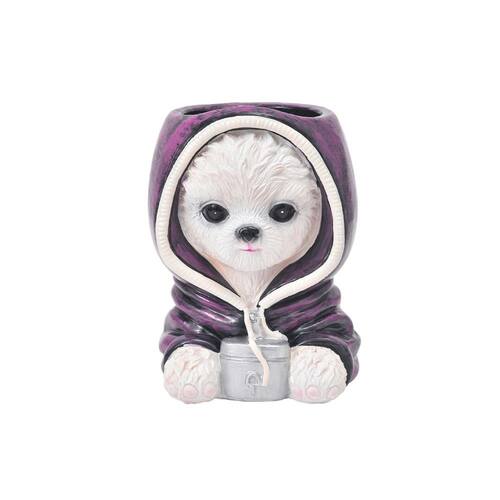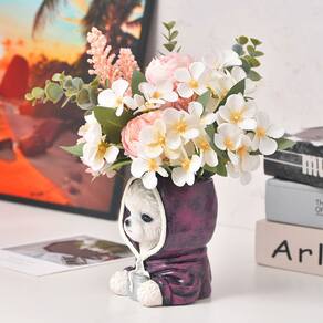Material: resina Peso: 305 g Tamanho: 12,5 x 10 x 13 cm Design exclusivo de capuz para cães — Adorável vaso de flores em forma de cachorrinho usando capuz, adicionando um toque decorativo divertido e moderno a qualquer espaço. Material de resina durável — Feito de resina de alta qualidade, leve, porém resistente, resistente às intempéries e adequado para uso interno e externo. Tamanho compacto e prático — Medindo 12,5 x 10 x 13 cm, ideal para suculentas, ervas ou pequenas plantas verdes, perfeito para desktops, varandas ou pátios. Com orifício de drenagem — Equipado com orifício de drenagem e tampa de borracha, garantindo o controle adequado da água para manter as plantas saudáveis. Decoração versátil — Ótima para casa, escritório, jardim, varanda ou pátio; funciona tanto como ornamento decorativo quanto como plantador funcional.
