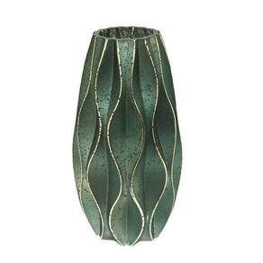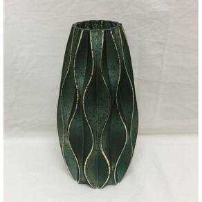 Ficha técnica Comprimento: 13 cm Largura: 13 cm Altura: 23 cm Cor: Verde com listras douradas Material: Vidro