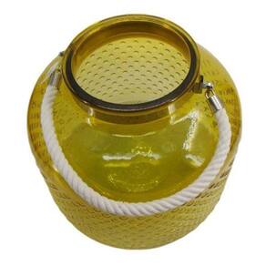 O Vaso de vidro decorativo com alça de corda trançada é perfeito para decorar seu ambiente, seja para suas flores preferidas ou simplesmente como uma peça decorativa. Confeccionado em vidro grosso, no tom amarelo.