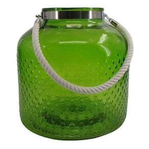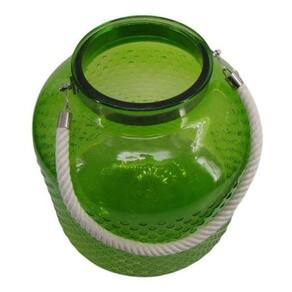 O Vaso de vidro decorativo com alça de corda trançada é perfeito para decorar seu ambiente, seja para suas flores preferidas ou simplesmente como uma peça decorativa. Confeccionado em vidro grosso, na cor verde.