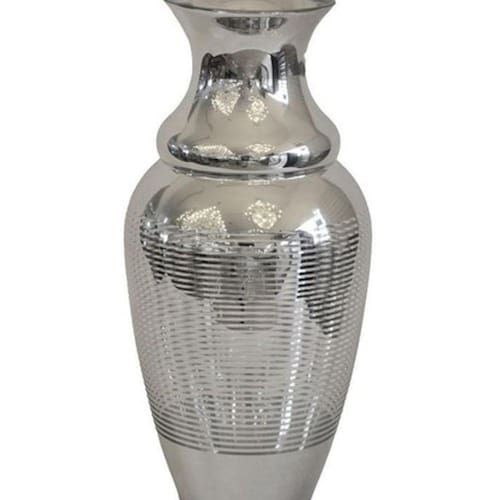 Vaso De Vidro Decorativo Prata Listras 49 X 25 Vaso decorativo em Vidro Prata Listrado 49 x 25 Vaso de vidro decorativo para decorar seu ambiente, seja para suas flores preferidas ou simplesmente como uma peça decorativa. Confeccionado em vidro prateado, listrado, trazendo elegânciaMedidas: Altura: 49 cm Diâmetro: 16 cm Largura: 25