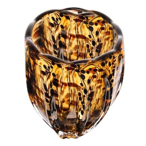 Vaso de vidro Murano na cor âmbar com padrão que remete à estampa de leopardo. Produzido pela Wolff, o vaso possui dimensões de 12 cm de diâmetro e 15,5 cm de altura. Ideal para decoração de interiores, pode ser utilizado com flores, folhagens ou simplesmente como peça decorativa em mesas, aparadores e estantes. Sua coloração âmbar confere um toque de elegância e combina com diferentes estilos de decoração.