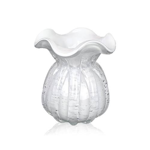 Vaso De Vidro Murano Trouxinha Veneza 12x14cm - Jolitex MEK Branco Leitoso -