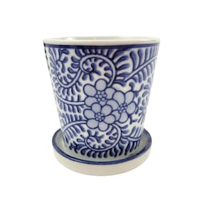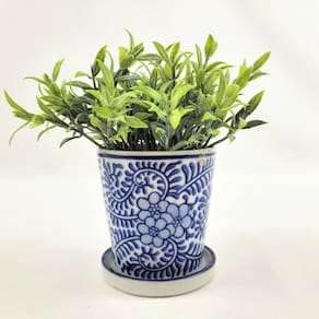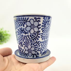 O Mini Vaso de Porcelana Floral Azul e Branco com Pires Acoplado é uma peça delicada e funcional que combina tradição e elegância. Com estampa floral em azul sobre fundo branco, traz inspiração no estilo oriental clássico. O pires acoplado à base garante praticidade, estabilidade e proteção contra vazamentos, enquanto o furo de drenagem torna o vaso ideal para o cultivo de pequenas plantas naturais. Uma peça compacta que valoriza qualquer ambiente com um toque refinado.