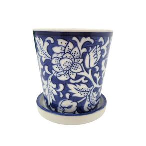 Vaso Decorativo Azul E Branco Floral 8x7cm Com Furo Modelo 3 Mini Vaso de Porcelana Arabesco Azul e Branco com Pires Acoplado Inigual Decor