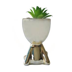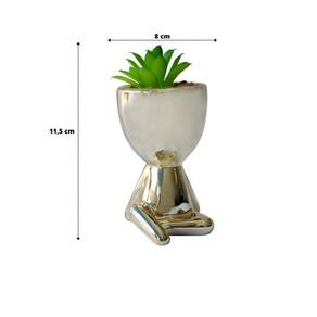 Vaso decorativo com pernas dobradas feito em cerâmica e suculentas artificial. Ideal para decorar racks, aparadores, estantes tornando o ambiente muito mais elegante e moderno.