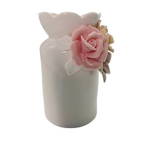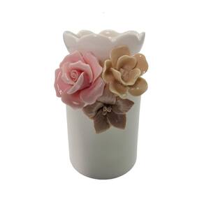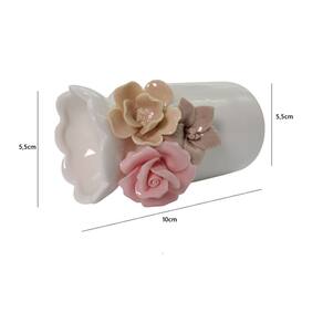 Delicadeza e sofisticação em cada detalhe. Este vaso decorativo de cerâmica é a escolha perfeita para quem busca dar um toque romântico e elegante à decoração. Com acabamento em branco brilhante e lindas rosas em relevo nas cores rosa e bege, ele se destaca pela sua beleza sutil e charmosa.