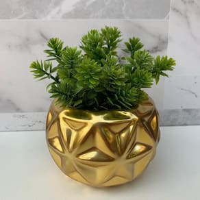Que tal dar uma repaginada na decoração da sua casa, local de trabalho ou qualquer outro lugar que desejar, com muito estilo e bom gosto com esse lindo vaso de cerâmica trabalhado dourado, criando um ambiente moderno e elegante. Nova tendência na decoração contemporânea, produzido em cerâmica, pode ser utilizado separadamente ou em conjunto com outros itens decorativos.