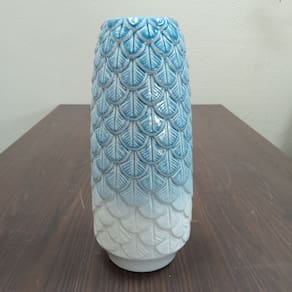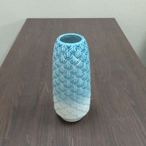 Altura: 37,5 cm Largura: 16 cm Profundidade: 16 cm Peso: 1,93 Kg Diâmetro da Base: 11,5 cm Diâmetro do Topo: 7 cm Material: Cerâmica Cor: Azul