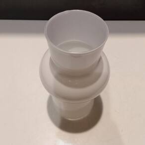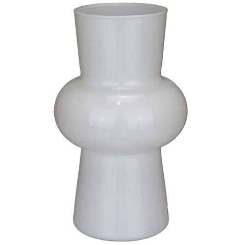 VASO Altura: 19,9 cm Largura: 11,5 cm Profundidade: 11,5 cm Espessura: ,3 cm Peso: 0,27 Kg Diâmetro da Base: 8,2 cm Diâmetro do Corpo: 11,5 cm Diâmetro do Topo: 7,4 cm Material: Vidro Cor: Branco
