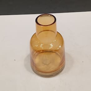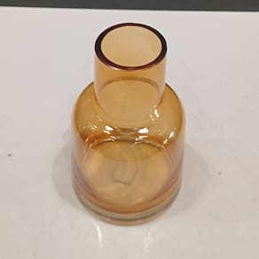 VASO DECORATIVO Altura: 14,3 cm Largura: 8,8 cm Profundidade: 8,8 cm Espessura: ,4 cm Peso: 0,37 Kg Diâmetro da Base: 8,8 cm Diâmetro do Corpo: 4,5 cm Diâmetro do Topo: 4,1 cm Material: Vidro Cor: Âmbar