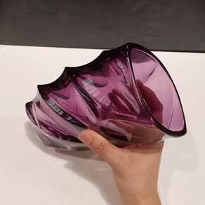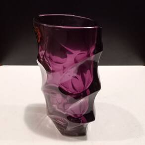 VASO Altura: 19,3 cm Largura: 12,4 cm Profundidade: 7,4 cm Espessura: ,6 cm Peso: 1,20 Kg Diâmetro da Base: 9 cm Diâmetro do Topo: 10,5 cm Material: Vidro Cor: Roxo