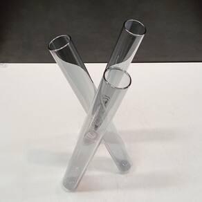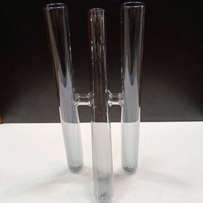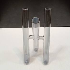 VASO Altura: 23 cm Largura: 10,5 cm Profundidade: 10,5 cm Espessura: ,2 cm Peso: 0,15 Kg Diâmetro do Topo: 2 cm Material: Borossilicato Cor: Fumê