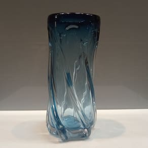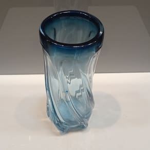 Altura: 23,5 cm Largura: 10 cm Profundidade: 10 cm Espessura: 1 cm Peso: 1,23 Kg Diâmetro da Base: 8 cm Diâmetro do Topo: 8,3 cm Material: Vidro Cor: Azul