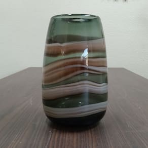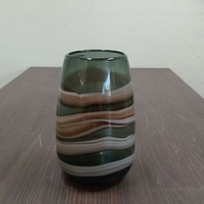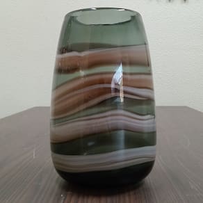 Altura: 27 cm Largura: 17 cm Profundidade: 17 cm Espessura: ,6 cm Peso: 2,46 Kg Diâmetro da Base: 10 cm Diâmetro do Topo: 11 cm Material: Vidro Cor: Marrom