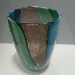Altura: 27,6 cm Largura: 20 cm Profundidade: 20 cm Espessura: ,8 cm Peso: 2,18 Kg Diâmetro da Base: 9 cm Diâmetro do Topo: 18 cm Material: Vidro Cor: Multicolorido