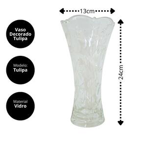 Dê um toque de sofisticação e elegância à sua decoração com o Vaso de Vidro Decorado com Textura Tulipa! Seu design refinado e detalhes em relevo trazem um charme especial para qualquer ambiente. Com 24cm de altura e 13cm de diâmetro, é ideal para composições com flores naturais ou artificiais, além de ser uma peça decorativa por si só.