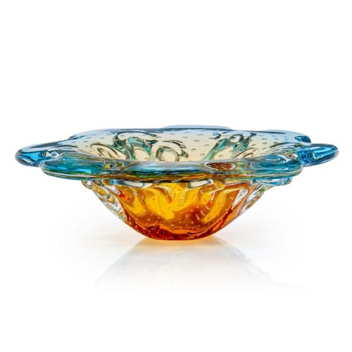 Vaso em cristal murano água marinha e âmbar são marcos. produzida 100% artesanalmente com a técnica secular e originária da itália. a qual com muita maestria e criatividade são desenvolvidas e preservadas no brasil pela cristais são marcos desde 1962. as escolhas das peças são versáteis e podem ser usadas para decorar casas e ambientes dos mais variados estilos. a tradição do cristal murano e a inovação em detalhes. formas e cores. trazem requinte para a decoração. o colorido do muranoem especial. tornase um coringa na decoração e produzem um efeito muito bonito em locais com luz natural. não dependendo de nenhum outro elemento para se destacar. as peças em cristal murano. são atemporais. aposte nelas como a estrela da decoração ou ainda para harmonizar em combinações com diferentes artigos para compor um ambiente. junto com as peças em murano. leve ainda um pouco de história. uma dica é misturar diferentes muranos e criar sua coleção de arte particular. o cristal murano. tornouse objeto de desejo por suas caracteristicas únicas. sendo assim. com todas essas particularidades. ele é uma ótima escolha para decorar. colecionar e ainda presentear com classe e sofisticação.