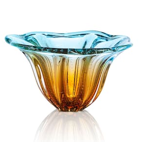 Vaso Em Cristal Murano agua Marinha E Ambar São Marcos