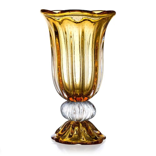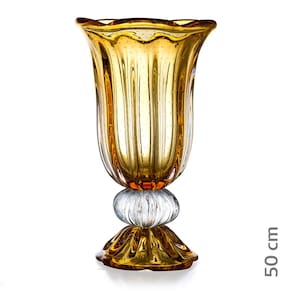 Vaso Em Cristal Murano Ambar Assinado São Marcos Comprimento:31cm Largura:31cm Altura:50cm Peso:11540g Produzida 100% artesanalmente com a técnica secular e originária da Itália, a qual com muita maestria e criatividade são desenvolvidas e preservadas no Brasil pela Cristais São Marcos desde 1962. As escolhas das peças são versáteis e podem ser usadas para decorar casas e ambientes dos mais variados estilos. A tradição do Cristal Murano e a inovação em detalhes, formas e cores, trazem requinte para a decoração. O colorido do Murano em especial, torna-se um coringa na decoração e produzem um efeito muito bonito em locais com luz natural, não dependendo de nenhum outro elemento para se destacar. As peças em Cristal Murano, são atemporais, aposte nelas como a estrela da decoração ou ainda para harmonizar em combinações com diferentes artigos para compor um ambiente. Junto com as peças em Murano, leve ainda um pouco de história. Uma dica é misturar diferentes Muranos e criar sua coleção de arte particular. O cristal Murano, tornou-se objeto de desejo por suas características únicas. Sendo assim, com todas essas particularidades, ele é uma ótima escolha para decorar, colecionar e ainda presentear com classe e sofisticação.