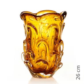 Vaso Em Cristal Murano Ambar São Marcos Comprimento:18cm Largura:18cm Altura:26cm Peso:5910g Produzida 100% artesanalmente com a técnica secular e originária da Itália, a qual com muita maestria e criatividade são desenvolvidas e preservadas no Brasil pela Cristais São Marcos desde 1962. As escolhas das peças são versáteis e podem ser usadas para decorar casas e ambientes dos mais variados estilos. A tradição do Cristal Murano e a inovação em detalhes, formas e cores, trazem requinte para a decoração. O colorido do Muranoem especial, torna-se um coringa na decoração e produzem um efeito muito bonito em locais com luz natural, não dependendo de nenhum outro elemento para se destacar. As peças em Cristal Murano, são atemporais, aposte nelas como a estrela da decoração ou ainda para harmonizar em combinações com diferentes artigos para compor um ambiente. Junto com as peças em Murano, leve ainda um pouco de história. Uma dica é misturar diferentes Muranos e criar sua coleção de arte particular. O cristal Murano, tornou-se objeto de desejo por suas características únicas. Sendo assim, com todas essas particularidades, ele é uma ótima escolha para decorar, colecionar e ainda presentear com classe e sofisticação. Ean: 7894728631607