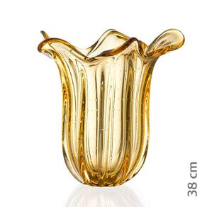 Vaso Em Cristal Murano Ambar São Marcos Comprimento:35cm Largura: 35cm Altura:38cm Peso:7120g Produzida 100% artesanalmente com a técnica secular e originária da Itália, a qual com muita maestria e criatividade são desenvolvidas e preservadas no Brasil pela Cristais São Marcos desde 1962. As escolhas das peças são versáteis e podem ser usadas para decorar casas e ambientes dos mais variados estilos. A tradição do Cristal Murano e a inovação em detalhes, formas e cores, trazem requinte para a decoração. O colorido do Muranoem especial, torna-se um coringa na decoração e produzem um efeito muito bonito em locais com luz natural, não dependendo de nenhum outro elemento para se destacar. As peças em Cristal Murano, são atemporais, aposte nelas como a estrela da decoração ou ainda para harmonizar em combinações com diferentes artigos para compor um ambiente. Junto com as peças em Murano, leve ainda um pouco de história. Uma dica é misturar diferentes Muranos e criar sua coleção de arte particular. O cristal Murano, tornou-se objeto de desejo por suas características únicas. Sendo assim, com todas essas particularidades, ele é uma ótima escolha para decorar, colecionar e ainda presentear com classe e sofisticação.