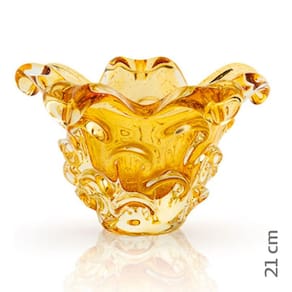 Vaso Em Cristal Murano Ambar São Marcos Comprimento:35cm Largura:35cm Altura:21cm Peso:6840g Produzida 100% artesanalmente com a técnica secular e originária da Itália, a qual com muita maestria e criatividade são desenvolvidas e preservadas no Brasil pela Cristais São Marcos desde 1962. As escolhas das peças são versáteis e podem ser usadas para decorar casas e ambientes dos mais variados estilos. A tradição do Cristal Murano e a inovação em detalhes, formas e cores, trazem requinte para a decoração. O colorido do Muranoem especial, tornase um coringa na decoração e produzem um efeito muito bonito em locais com luz natural, não dependendo de nenhum outro elemento para se destacar. As peças em Cristal Murano, são atemporais, aposte nelas como a estrela da decoração ou ainda para harmonizar em combinações com diferentes artigos para compor um ambiente. Junto com as peças em Murano, leve ainda um pouco de história. Uma dica é misturar diferentes Muranos e criar sua coleção de arte particular. O cristal Murano, tornouse objeto de desejo por suas caracteristicas únicas. Sendo assim, com todas essas particularidades, ele é uma ótima escolha para decorar, colecionar e ainda presentear com classe e sofisticação.