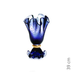 Vaso Em Cristal Murano Azul Com Ouro 24K - São Marcos 39cm Vaso Em Cristal Murano Azul Com Ouro 24 K - São Marcos é uma peça decorativa produzida 100% artesanalmente com a técnica secular e originária da Itália, a qual com muita maestria e criatividade são desenvolvidas e preservadas no brasil pela Cristais São Marcos desde 1962.