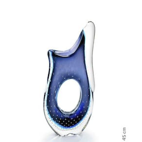 O Vaso Em Cristal Murano Da São Marcos é uma peça decorativa produzida 100% artesanalmente com a técnica secular e originária da Itália, a qual com muita maestria e criatividade são desenvolvidas e preservadas no brasil pela Cristais São Marcos desde 1962. A tradição do cristal murano e a inovação em detalhes, formas e cores, trazem requinte para a decoração. O colorido do murano em especial, torna-se um coringa na hora de decorar e produz um efeito muito bonito em locais com luz natural, não dependendo de nenhum outro elemento para se destacar. As peças em cristal murano, são atemporais, aposte nelas como a estrela da decoração ou ainda para harmonizar em combinações com diferentes artigos para compor um ambiente. Ficha TécnicaMarca: São MarcosModelo: Vaso Em Cristal Murano Azul São MarcosRef.: 4375 ZOMaterial: Cristal MuranoCor: AzulMedidas A x C x L : 45 x 20 x 9 cmPeso: 4.776gConteúdo Da Embalagem:01 Vaso Em Cristal Murano Azul - São MarcosJunto com as peças em murano, leve ainda um pouco de história. Uma dica é misturar diferentes muranos e criar sua coleção de arte particular. O cristal murano, tornou-se objeto de desejo por suas características únicas. Sendo assim, com todas essas particularidades, ele é uma ótima escolha para decorar, colecionar e ainda presentear com classe e sofisticação. IMPORTANTE: Produto produzido de forma artesanal, são admitidas nas características finais do processo de produção desse produto pequenas variações de peso, formato, cor e ainda o aparecimento de minúsculas bolhas de ar, típicas do cristal murano.