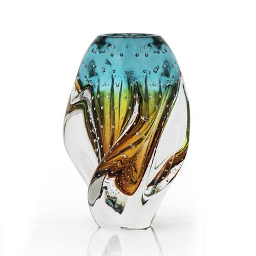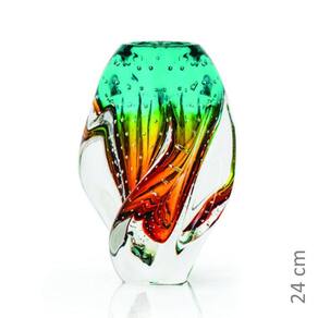 Vaso Em Cristal Murano Esmeralda E Âmbar - São Marcos 24cm Vaso Em Cristal Murano Esmeralda E Âmbar - São Marcos é uma peça decorativa produzida 100% artesanalmente com a técnica secular e originária da Itália, a qual com muita maestria e criatividade são desenvolvidas e preservadas no brasil pela Cristais São Marcos desde 1962. A tradição do cristal murano e a inovação em detalhes, formas e cores, trazem requinte para a decoração. O colorido do murano em especial, torna-se um coringa na hora de decorar e produz um efeito muito bonito em locais com luz natural, não dependendo de nenhum outro elemento para se destacar. As peças em cristal murano, são atemporais, aposte nelas como a estrela da decoração ou ainda para harmonizar em combinações com diferentes artigos para compor um ambiente. FICHA TÉCNICA Marca: São Marcos Modelo: Vaso Em Cristal Murano Esmeralda E Âmbar - São Marcos Ref.: 3476VA Material: Cristal Murano Medidas A x C x L : 24 X 13 X 13 cm Peso: 3,710 Conteúdo Da Embalagem: 01 Vaso Em Cristal Murano Esmeralda E Âmbar - São Marcos Junto com as peças em murano, leve ainda um pouco de história. Uma dica é misturar diferentes muranos e criar sua coleção de arte particular. O cristal murano, tornou-se objeto de desejo por suas características únicas. Sendo assim, com todas essas particularidades, ele é uma ótima escolha para decorar, colecionar e ainda presentear com classe e sofisticação. IMPORTANTE: Produto produzido de forma artesanal, são admitidas nas características finais do processo de produção desse produto pequenas variações de peso, formato, cor e ainda o aparecimento de minúsculas bolhas de ar, típicas do cristal murano.