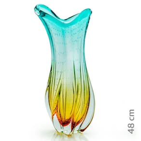 Vaso Em Cristal Murano Esmeralda E Ambar São Marcos Comprimento:19cm Largura:18cm Altura:48cm Peso:6560g Produzida 100% artesanalmente com a técnica secular e originária da Itália, a qual com muita maestria e criatividade são desenvolvidas e preservadas no Brasil pela Cristais São Marcos desde 1962. As escolhas das peças são versáteis e podem ser usadas para decorar casas e ambientes dos mais variados estilos. A tradição do Cristal Murano e a inovação em detalhes, formas e cores, trazem requinte para a decoração. O colorido do Muranoem especial, tornase um coringa na decoração e produzem um efeito muito bonito em locais com luz natural, não dependendo de nenhum outro elemento para se destacar. As peças em Cristal Murano, são atemporais, aposte nelas como a estrela da decoração ou ainda para harmonizar em combinações com diferentes artigos para compor um ambiente. Junto com as peças em Murano, leve ainda um pouco de história. Uma dica é misturar diferentes Muranos e criar sua coleção de arte particular. O cristal Murano, tornouse objeto de desejo por suas caracteristicas únicas. Sendo assim, com todas essas particularidades, ele é uma ótima escolha para decorar, colecionar e ainda presentear com classe e sofisticação. Ean: 7894728705650