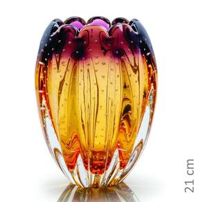Vaso Em Cristal Murano Lilás E Âmbar - São Marcos 21cm Vaso Em Cristal Murano Lilás E Âmbar - São Marcos é uma peça decorativa produzida 100% artesanalmente com a técnica secular e originária da Itália, a qual com muita maestria e criatividade são desenvolvidas e preservadas no brasil pela Cristais São Marcos desde 1962.