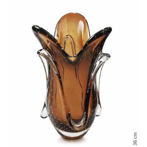 O Vaso Em Cristal Murano Da São Marcos é uma peça decorativa produzida 100% artesanalmente com a técnica secular e originária da Itália, a qual com muita maestria e criatividade são desenvolvidas e preservadas no brasil pela Cristais São Marcos desde 1962. A tradição do cristal murano e a inovação em detalhes, formas e cores, trazem requinte para a decoração. O colorido do murano em especial, torna-se um coringa na hora de decorar e produz um efeito muito bonito em locais com luz natural, não dependendo de nenhum outro elemento para se destacar. As peças em cristal murano, são atemporais, aposte nelas como a estrela da decoração ou ainda para harmonizar em combinações com diferentes artigos para compor um ambiente. Ficha TécnicaMarca: São MarcosModelo: Vaso Em Cristal Murano Marrom São MarcosRef.: 4355 MDMaterial: Cristal MuranoCor: MarronMedidas A x C x L : 36 x 27 x 24 cmPeso: 2.732gConteúdo Da Embalagem:01 Vaso Em Cristal Murano Marrom - São MarcosJunto com as peças em murano, leve ainda um pouco de história. Uma dica é misturar diferentes muranos e criar sua coleção de arte particular. O cristal murano, tornou-se objeto de desejo por suas características únicas. Sendo assim, com todas essas particularidades, ele é uma ótima escolha para decorar, colecionar e ainda presentear com classe e sofisticação. IMPORTANTE: Produto produzido de forma artesanal, são admitidas nas características finais do processo de produção desse produto pequenas variações de peso, formato, cor e ainda o aparecimento de minúsculas bolhas de ar, típicas do cristal murano.