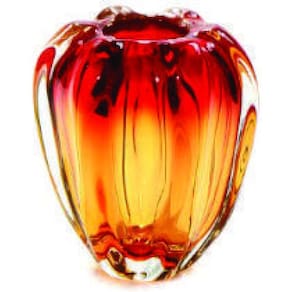 Vaso Em Cristal Murano Vermelho E Âmbar - São Marcos 18cm Vaso Em Cristal Murano Vermelho E Âmbar - São Marcos é uma peça decorativa produzida 100% artesanalmente com a técnica secular e originária da Itália, a qual com muita maestria e criatividade são desenvolvidas e preservadas no brasil pela Cristais São Marcos desde 1962.
