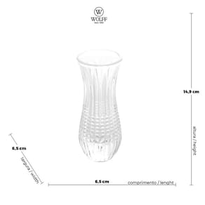 Vaso Em Cristal Queen 6x15cm Wolff Âmbar - Características Gerais do Produto: • Dimensões: Ø 6x15cm • Material Principal: Cristal • Linha: Queen • Informações Adicionais: Use somente esponja macia e sabão neutro; Não limpe as peças com esponjas ásperas, palha de aço ou produtos abrasivos; Enxágue com água em abundância; Para secar utilize um pano seco e macio; Evitar pancadas e choques térmicos, pois isso poderá causar trincas ou quebras no produto resultando em cacos