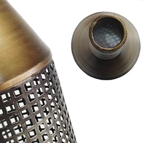 Ideal para adicionar um toque de luxo à sua decoração, ele é perfeito para exibir flores, plantas ou simplesmente como uma peça de destaque. Sua combinação de cores torna-o versátil, sendo perfeito para complementar salas, escritórios ou até mesmo ambientes mais ousados. O Vaso em Metal Base Aramado traz estilo e personalidade, elevando qualquer espaço com sofisticação.