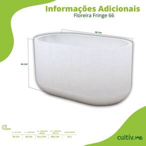 Floreira Fringe 66 (54L) Off-White JAPI Descrição * A Floreira Fringe 66 JAPI na cor Off-White é a escolha ideal para quem busca elegância, autenticidade e personalidade na decoração. * Versátil e sofisticada, adapta-se perfeitamente a diferentes projetos decorativos, valorizando ambientes internos e externos. * Sua textura delicada e acabamento impecável trazem requinte e charme, harmonizando com diversos estilos, do clássico ao contemporâneo. * Com capacidade para 54 litros, é ideal para composições com plantas maiores, flores ornamentais ou até mesmo para projetos paisagísticos ousados. * Produzida em polietileno de alta resistência, oferece leveza, durabilidade e praticidade sem abrir mão da estética.