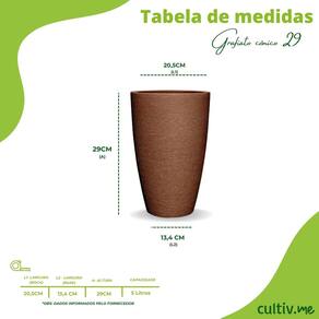 Vaso Grafiato Cônico 29 (5L) Cor Ferrugem NUTRIPLAN Descrição * Superfíce que reproduz perfeitamente a textura grafiato de parede. * O Vaso Grafiato Nutriplan é a escolha ideal para quem busca elegância e durabilidade em vasos decorativos. * Com um design único e uma textura sofisticada que remete ao acabamento grafiato, este vaso se destaca como uma peça versátil para ambientes internos e externos, trazendo um toque rústico e contemporâneo que se adapta a diversos estilos de decoração. * Fabricado com polietileno, o Vaso Grafiato oferece excelente resistência a impactos e proteção contra raios UV, garantindo sua durabilidade mesmo em condições externas. * Além de ser fácil de limpar e manter, este vaso é perfeito para acomodar plantas ornamentais de diferentes tamanhos, incluindo árvores frutíferas em seus modelos maiores, e pode ser utilizado em composições em jardins, varandas ou na decoração de interiores em salas e escritórios. Características * Tamanho: N°29 * Altura: 29 cm * Largura (Boca): 20,5 cm * Largura (Fundo): 13,4cm * Capacidade: 5 Litros * Cor: Ferrugem * Material: Polietileno Informações/Dicas/Usos * Possui proteção UV das cores. * Produto leve. * 100% feito a mão. Nós da CULTIV.ME trabalhamos desde 2013 para trazer os melhores produtos ao alcance de todos. CULTIV.ME o verde que faltava!