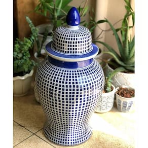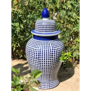 Esse belo Vaso de Porcelana da linha Blue White deixará o seu ambiente muito mais elegante e diferenciado. Os ricos detalhes de confecção e acabamento chegam a impressionar. Lindamente desenhado com estampa em quadrados