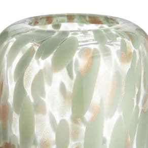 O Vaso Tempestade tem 21 cm e cada peça tem um padrão único, decorrente do processo de produção do vidro soprado que usa técnicas artesanais na sua produção.
