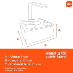 Características principais do produto: Modelo: Vaso Horta Inteligente com LED Branco; Altura: 8 cm; Largura: 20 cm; Profundidade: 20 cm; Composição: Material 100% reciclado.