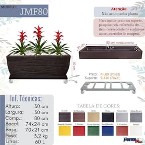 Altura: 30 cm Largura: 30 cm Comprimento: 80 cm Base: 70x21 cm Peso: 3.2 kg Capacidade: 60 l Material: polietileno