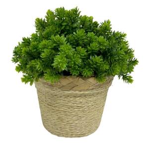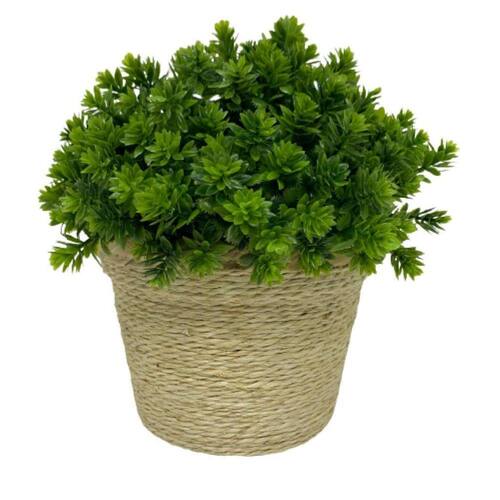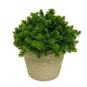 Vaso médio de plástico com corda sisal revestida e planta artificial
