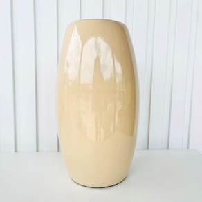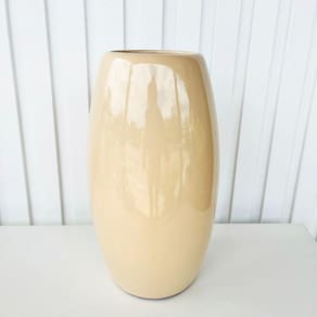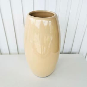 Decoração sala rack aparador vaso centro de mesa médio de cerâmica moderno na cor bege claro liso decoração luxo.