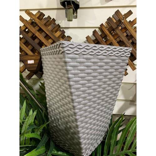 Vaso Para Planta Rattan Pequeno Modelo Twister 12 Litros - Coffe, Cinza, Bege E Branco
