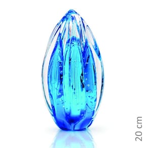 Vaso Pinha Em Cristal Murano Água Marinha - São Marcos 20cm Vaso Pinha Em Cristal Murano Água Marinha - São Marcos é uma peça decorativa produzida 100% artesanalmente com a técnica secular e originária da Itália, a qual com muita maestria e criatividade são desenvolvidas e preservadas no brasil pela Cristais São Marcos desde 1962.