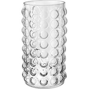 VASO REDONDO Altura: 28 cm Largura: 14 cm Profundidade: 14 cm Espessura: ,5 cm Peso: 1,45 Kg Material: Vidro Cor: Transparente