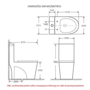 Tipo: Vaso sanitário monoblocoItem número: Smart 250Material: CerâmicaTemperatura no processo de produção:> 1280 CCor: BrancaAbsorção de água:< 0,2%, pode manter-se limpo depois de muito tempoTamanho (A*L*C): 780 * 390 * 680 mm (pode sofrer uma pequena variação em razão do processo produtivo)Peso: 50 kgVantagens: Descarga potente e econômica, facilidade na limpeza, designer sofisticado.Certificação: ISO9001: 2000 / CE / SASO