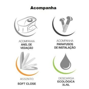 Seu fechamento soft close evita que a tampa do assento bata com força ao realizarmos seu fechamento, possui fixadores ajustáveis.